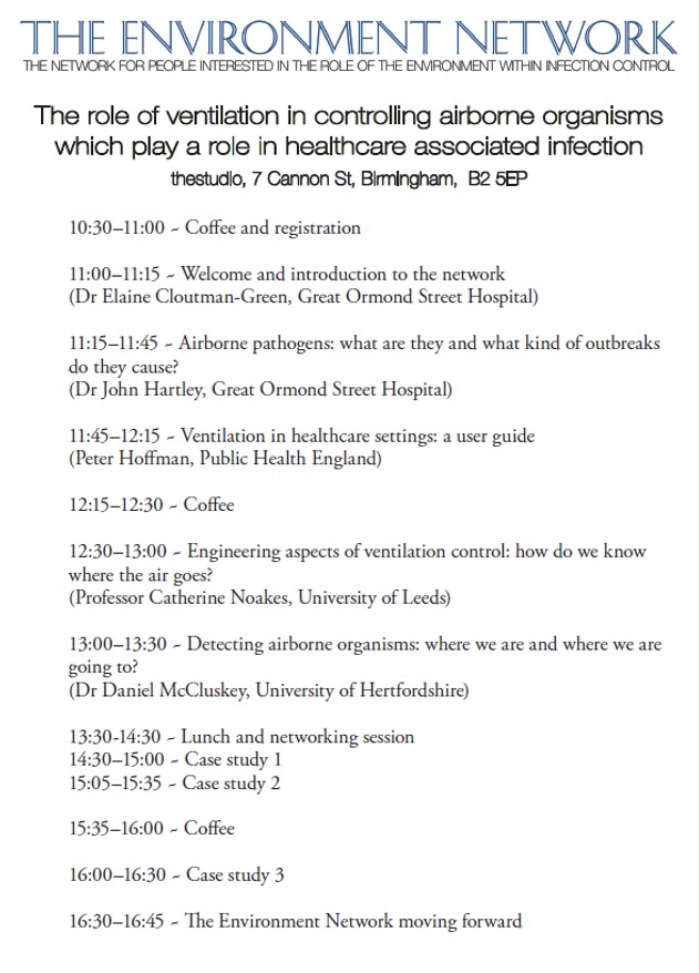 Due to the success of holding the event in Birmingham in 2018 the 2019 event stayed in the midlands. It focussed on ‘The role of ventilation in controlling airborne organisms
